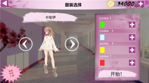 2、点击角色旁的按钮可切换角色服装,未解锁的服装需用金币购买,需先花费金币解锁后方能使用。
