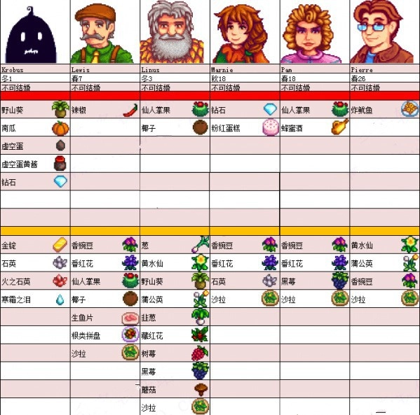 4、阿比盖尔:天性叛逆的女孩,最钟爱的物品有器材碎片、兔子的脚、黑莓馅饼、巧克力蛋糕、河豚、紫水晶和南瓜;她对各类宝石、料理、工业品以及花朵都抱有好感;不过,所有的鱼类、手工艺品、矿产和建筑材料都不在她的喜欢之列;而像所有蛋类、垃圾、鱼饵、牙签、海藻这类东西,则是她讨厌的。