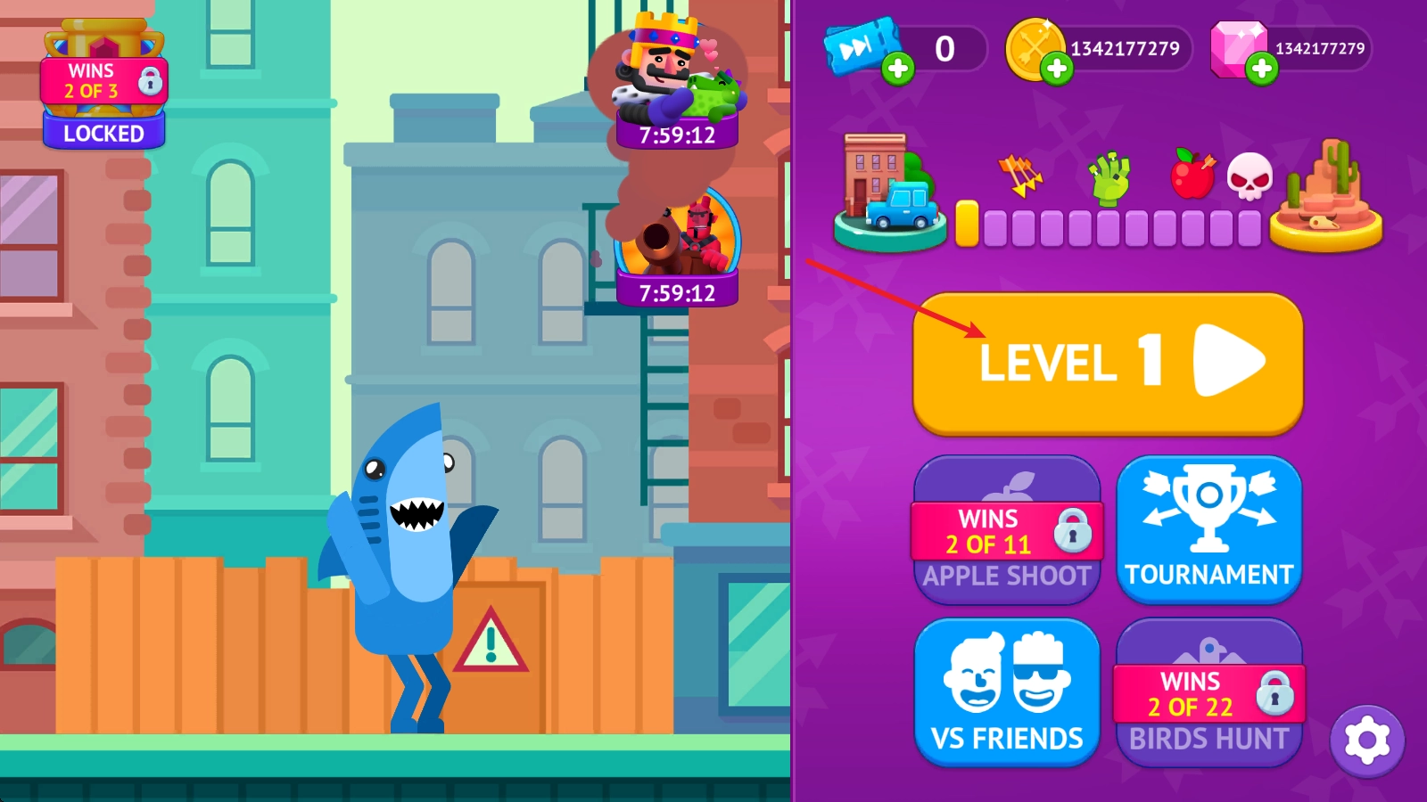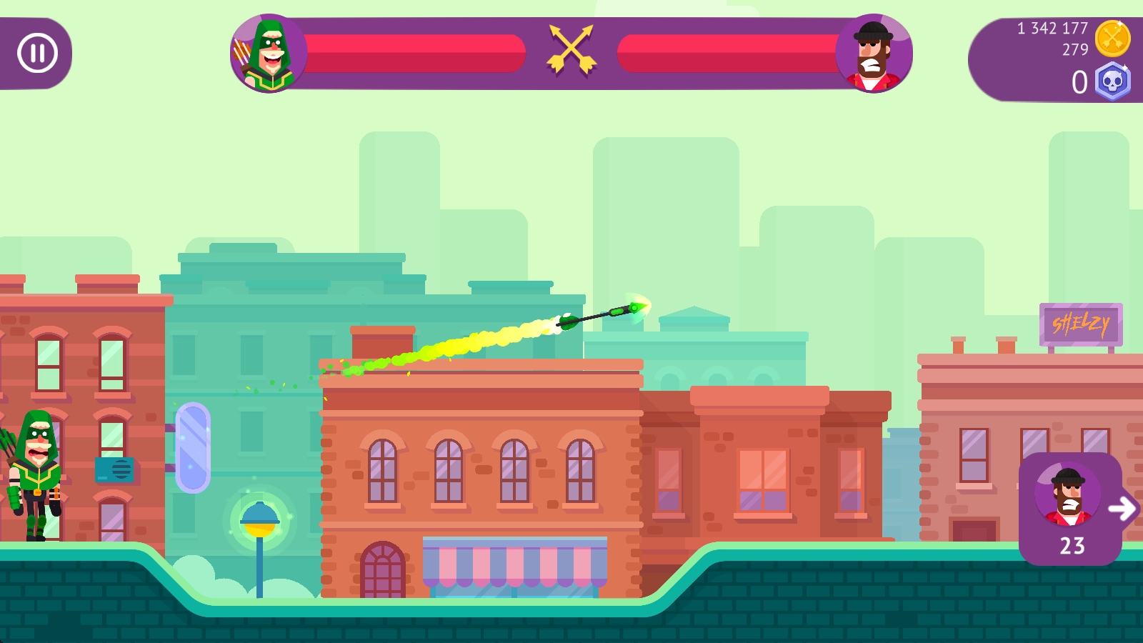 冷血射手(Bowmasters)是一款操作简单的休闲射击对战游戏。游戏采用幽默诙谐的卡通美术风格,登场角色个个诙谐逗趣;玩法上极易上手,玩家只需调整射击角度发射武器,命中敌人造成伤害,将其击败就能赢得胜利。游戏内提供了种类丰富的角色可供选用,每个角色都配有专属的独特武器,部分角色还支持升级,升级后可解锁威力更强的专属武器,助力玩家消灭更多敌人!