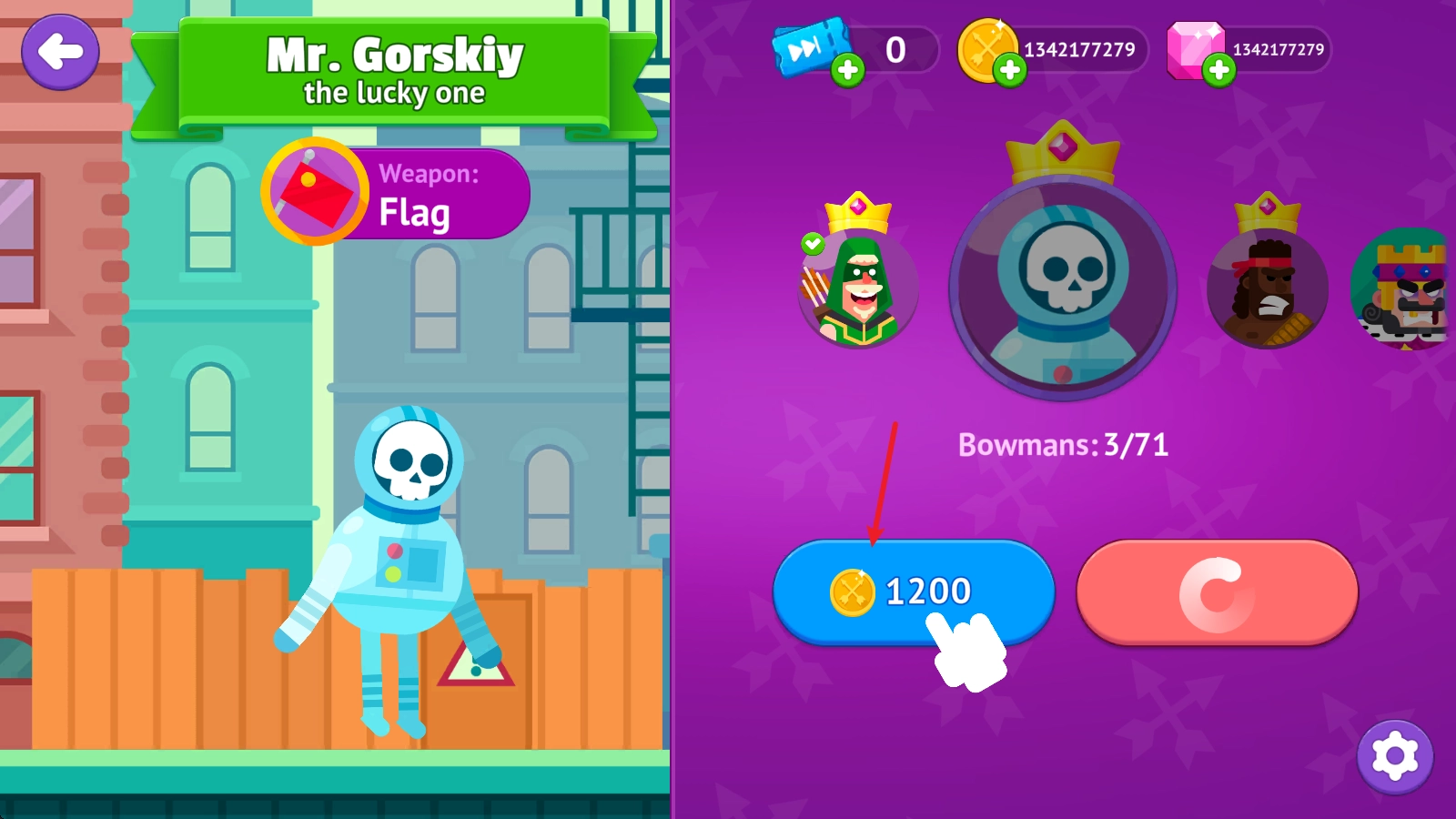 7、接着挑战下一关吧,你可以挑选不同的角色来玩游戏,每个角色配备的武器都是不一样的哦。