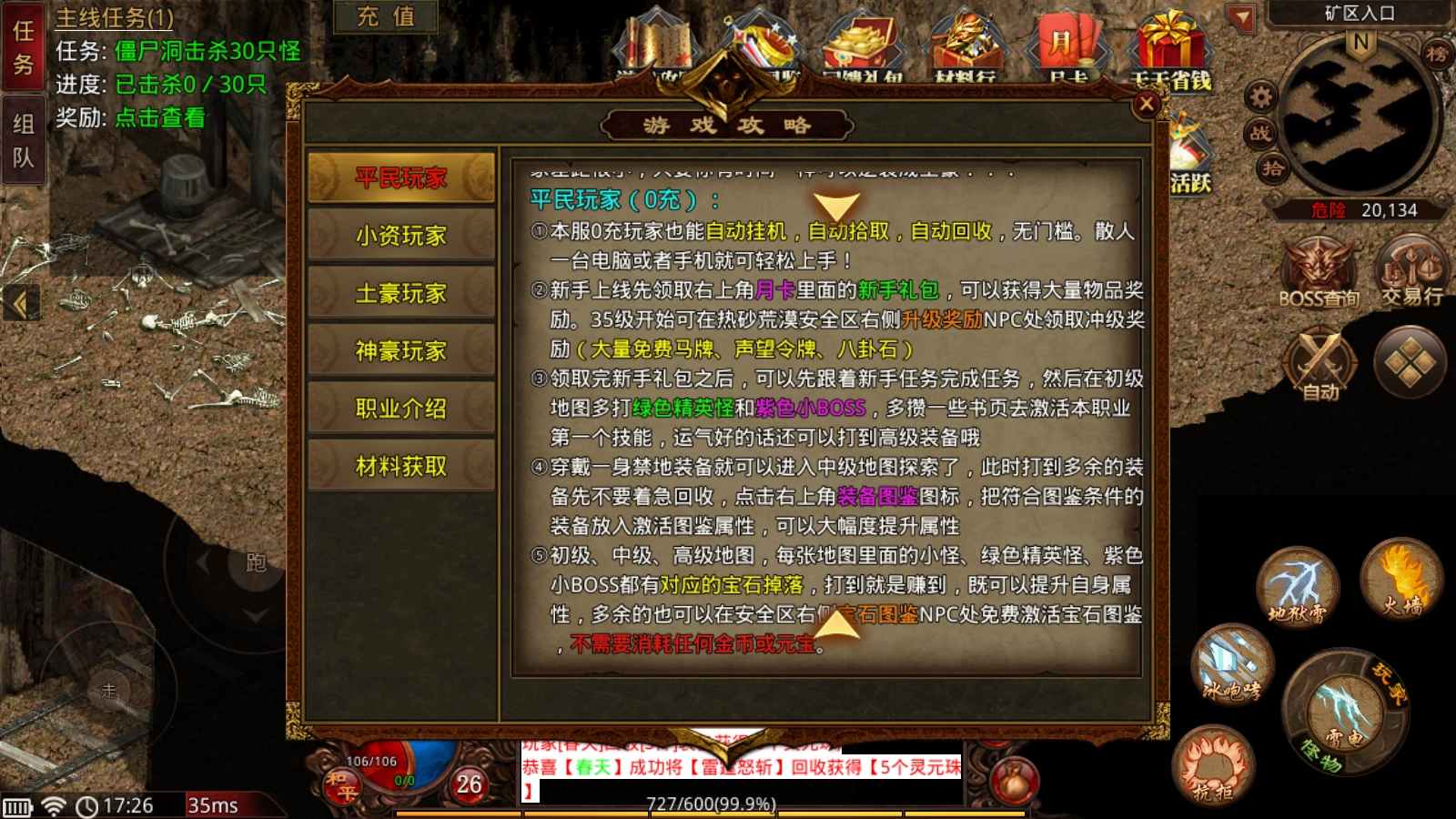 1、本服0充玩家也能自动挂机、自动拾取、自动回收,全程无门槛。散人不管用电脑还是手机,都能轻松上手!
