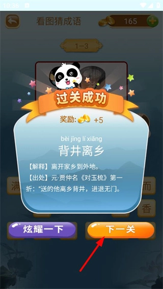 2、当完成后会显示成语的解释和出处;
