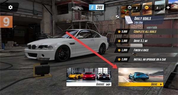 1、在游戏主界面,点击DRIVE按钮即可进入赛道驾驶场景。
