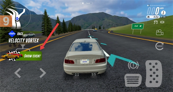 3、抵达目标赛事场地后,点击界面上的SHOW EVENT按钮,即可进入赛车比赛的准备界面。