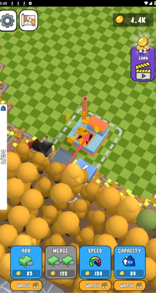 2、成功收集木材出售后可以获得金币,使用这些金币可以升级伐木车的速度、容量等属性。