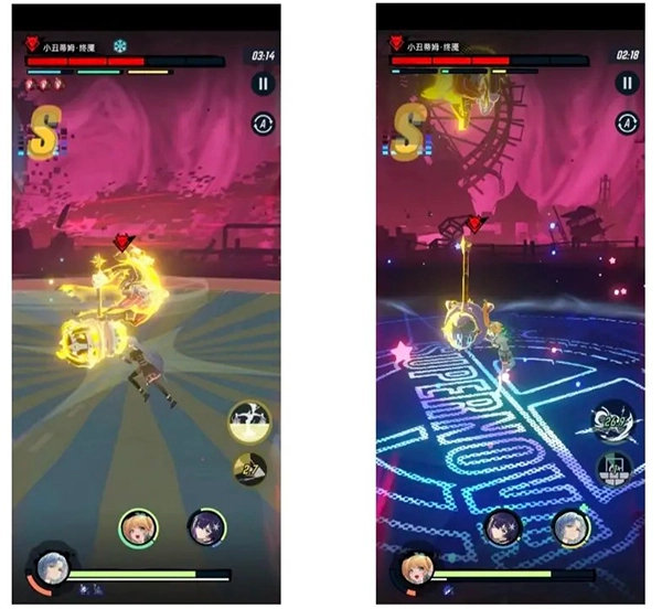 战斗开局阶段,小丑通常会用①②③的连招发起攻击。不少玩家都曾在技能②的左右横扫上栽过跟头,尤其是第一段左横扫很容易命中。应对时,我们可以先闪避掉第一段左横扫,抓住间隙打一套小爆发,然后立刻拉开距离(对自己操作有信心的话,也可以预判时机闪避第二段);接着切换远程角色,借助攻击距离优势进行拉扯,就能躲开第二段右横扫。等闪避完③的滚击技能后,小丑大概率会再次释放②的左右横扫,处理方式和之前一样就行。要是在持续战斗中主C的血量掉得比较多,记得及时切奶妈上场,一边通过走位拉扯敌人,一边用重击技能持续回血,保证队伍的续航。