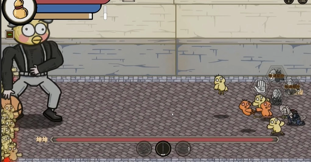 右侧的按键作用都不同,比如躲闪、重击、跳跃等。