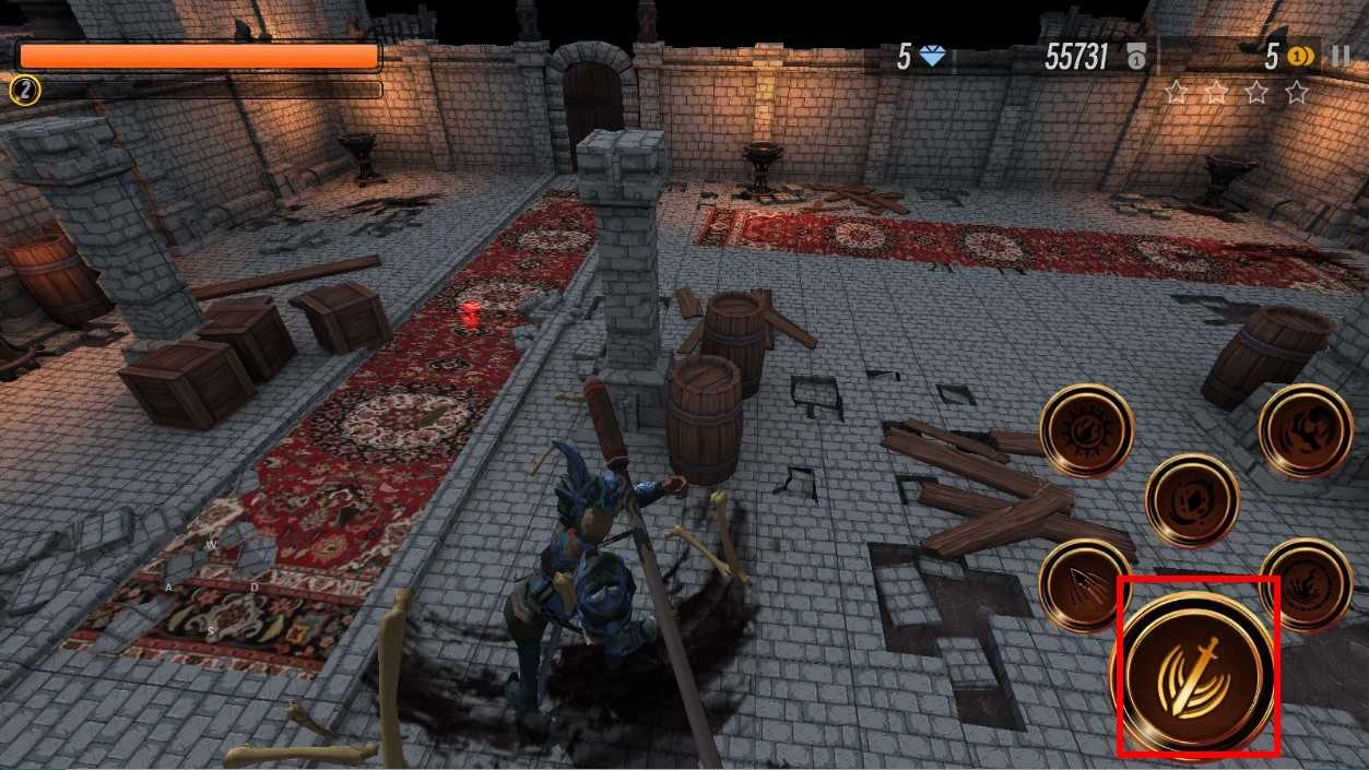 当遭遇敌人时,点击右侧的攻击按钮,利用武器向敌人发动攻击,成功击败敌人后能够获得钻石等奖励,从而推动关卡的进展。
