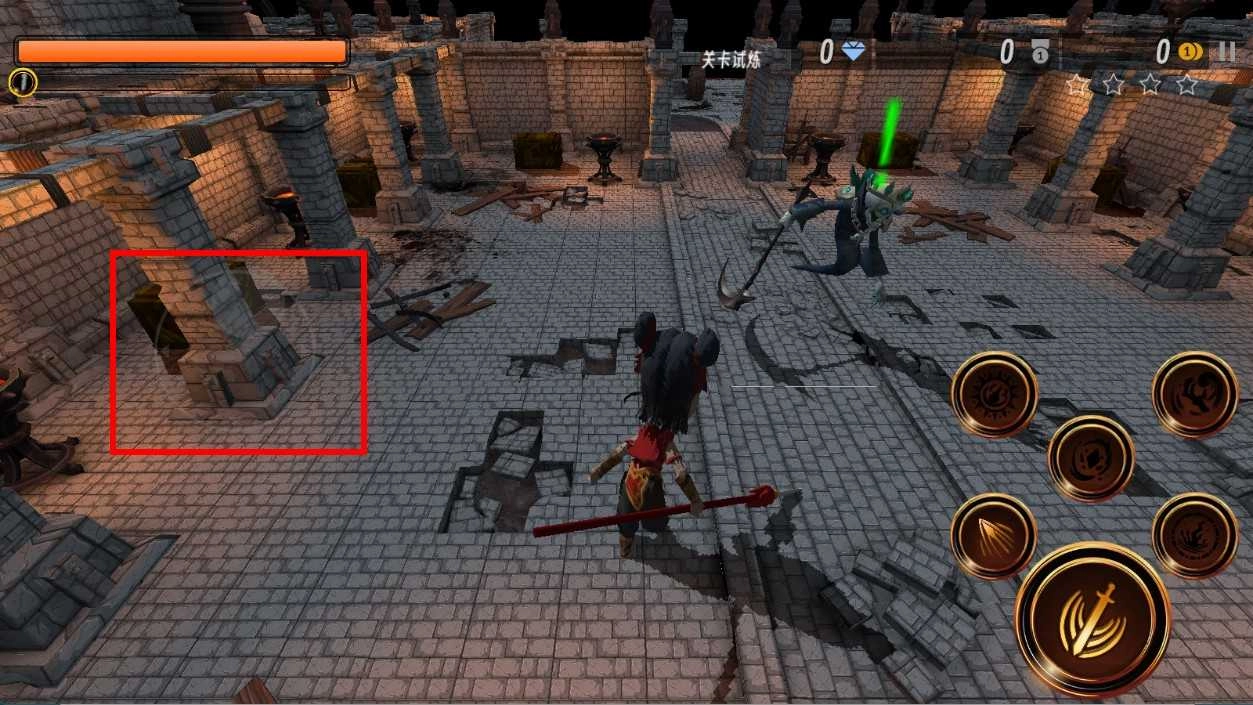 操控哪吒在关卡试炼场景中移动,探索古老的建筑区域,留意周边环境,随时准备应对可能出现的敌人。