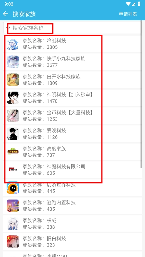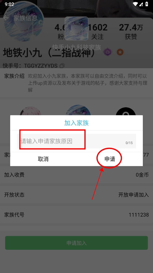 这里以“加入其他家族”为例,打开后可以选择加入,也能直接在搜索框里输入家族名称来搜索。