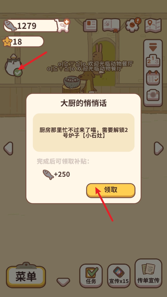 完成任务还能帮你快速获取大量小鱼干,以便更好地打造专属动物餐厅,迎接更多客人。