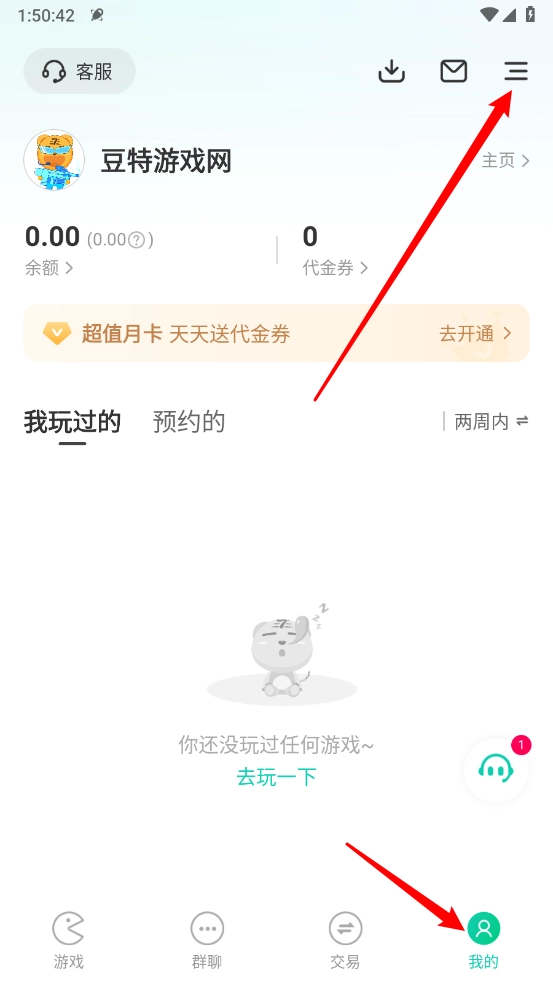 首先打开小7游戏,能看到界面下方设有游戏、群聊、回收、交易这几个功能标识。