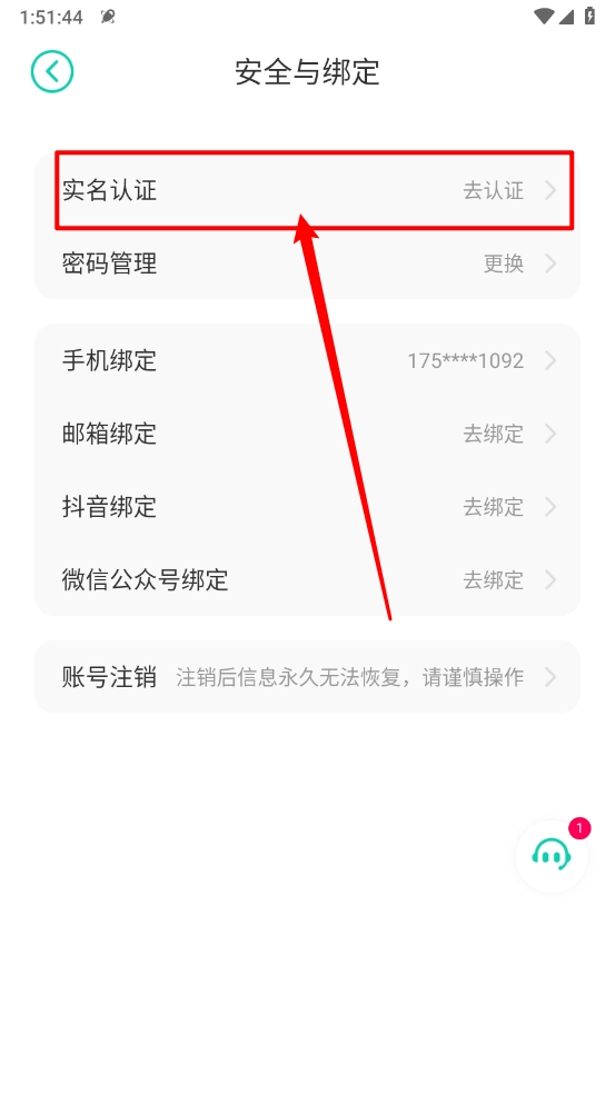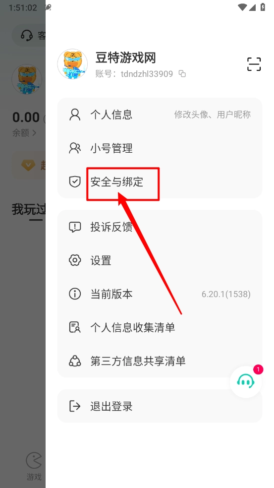 如图所示,点击"安全与绑定"进入。