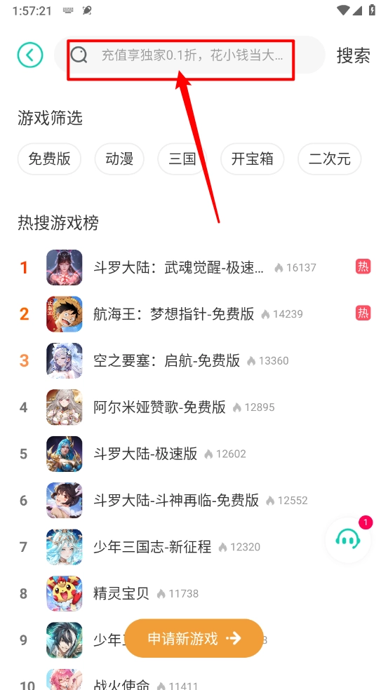切换至"排行"页面选择热门的游戏。