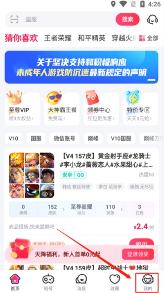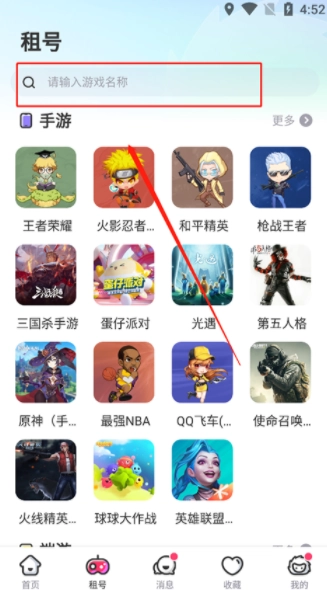 打开租号玩,在主页点击"租号"。