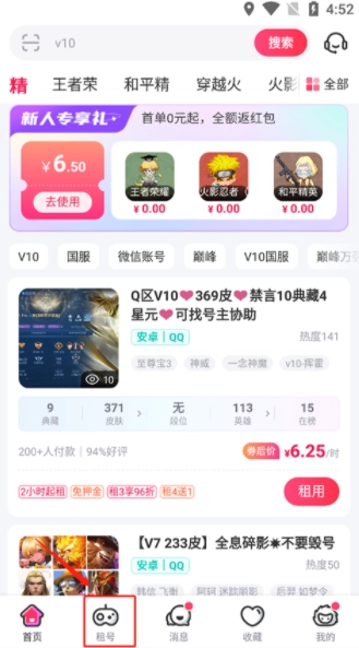 租号玩平台提供王者号、火影号等热门及新上线游戏的账号出租服务,海量优质账号低至0.5元起租。平台支持免密码安全登录,让你轻松体验稀有皮肤、高级装备,快速找到心仪账号。既能满足你畅快游戏的需求,又能全方位保障号主的账号安全。