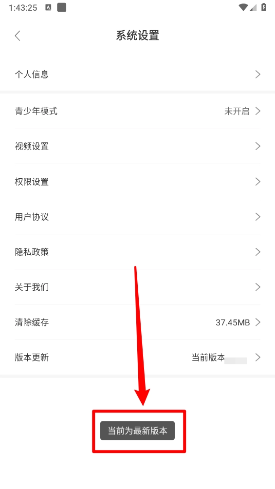 然后在系统设置页面点击底部"版本更新"。