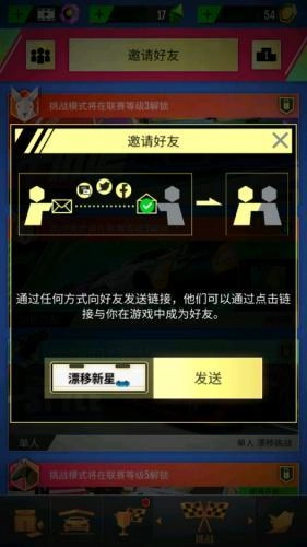 打开绝尘漂移,点击挑战,点击上方邀请好友。