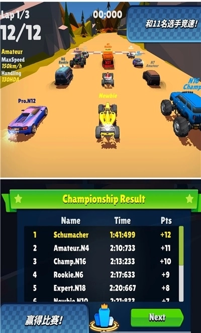迷你赛车大乱斗是一款充满酷炫赛车特技的游戏,众多职业选手在此参赛,他们的整体实力十分强劲。你得全力展现自己的真实水平,收集更多零件来改装赛车,如此才能更轻松地超越对手。