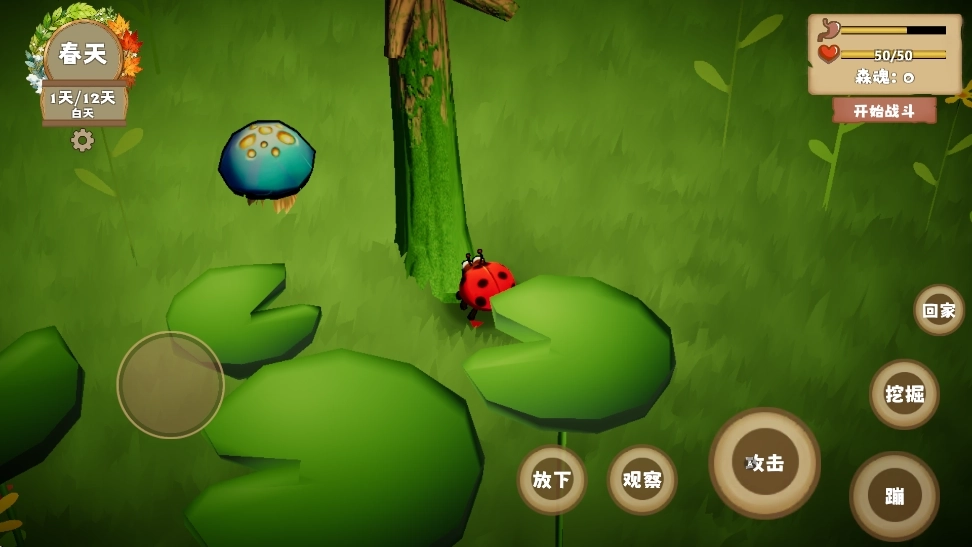 我是虫虫是一款超有趣的生存模拟游戏,背景设定在微观世界。玩家将化身为一只瓢虫,开启为期十二天的生存大挑战。游戏拥有独特的昼夜循环机制:白天需要探索落叶层、石缝区等多样生态环境,收集露水、加固巢穴;夜晚则要全力抵御外来威胁,用心守护自己的家园。