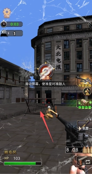 1、战斗过程中可通过滑动屏幕来调整准星,建议优先瞄准处于暴露状态的敌人,比如画面里躲在掩体旁边的敌人。