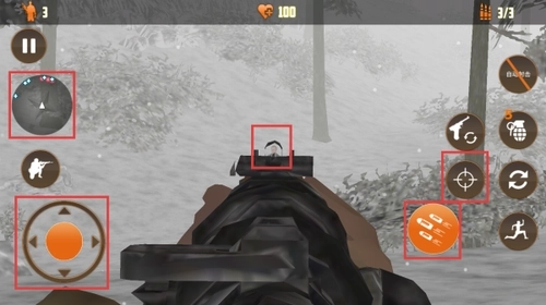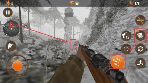2、通过左侧摇杆操控角色的移动方向,利用右侧按键来切换不同倍数的瞄准镜,在瞄准敌人后进行精准射击,以此达成消灭敌人的核心目标。