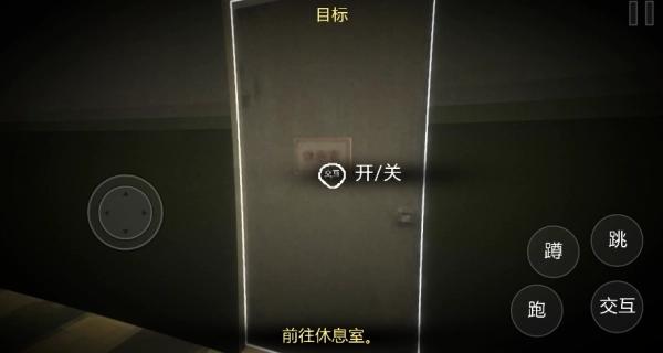 2、当对准门把手这类可交互物体时,屏幕上会出现提示图标,点击该图标就能触发开门等互动效果。