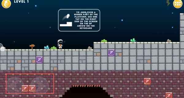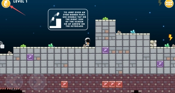2、点击右侧跳跃键能够完成二段跳,第一跳可以跨越常规距离,第二跳则能到达更高的平台。