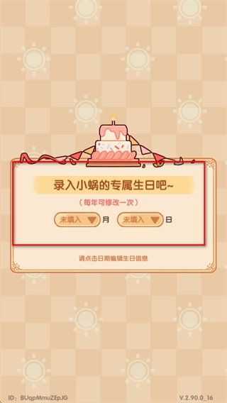 2、在生日录入界面,点击日期选择框填写角色生日信息,该信息每年可修改一次,以此完善角色资料。