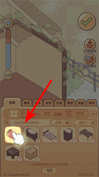 4、进入家具布置界面后,挑选像桌子这类对应的家具,点击该家具并将其摆放至房间里,以此完成房屋的装饰布置工作。