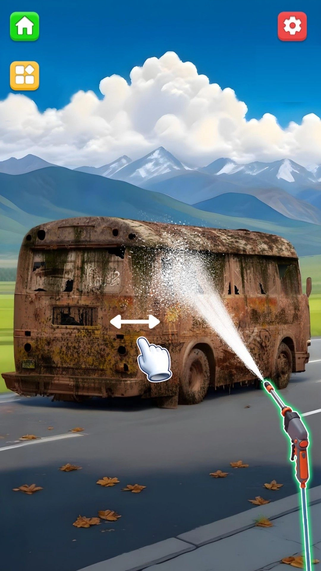 写实美术风格:整体采用简洁清新的写实画风,工作坊场景的细节刻画逼真——维修台面上的工具、零件货架上的引擎与轮毂,都呈现出细腻的质感;车身污垢随水流冲刷脱落的动态效果,也还原得十分真实。车辆模型严格贴合真实车型的比例,初始状态下破旧车辆的锈迹、车窗裂纹、车身凹陷等细节清晰可辨;改装完成后,车辆漆面的光泽度、定制涂装的色彩渐变,以及轮毂转动时的光影变化,都展现得相当出色。