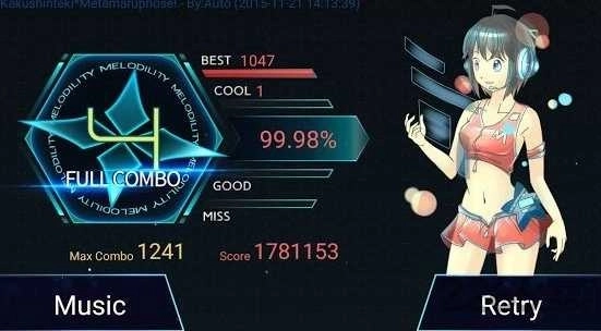 另外,要是在游戏过程中没有出现任何note失误,而且需要长按的note也没有提前松开,那么最终就能达成FullCombo状态。这个状态不会增加分数,不过会作为一个特殊标识显示在你的成绩页面上。