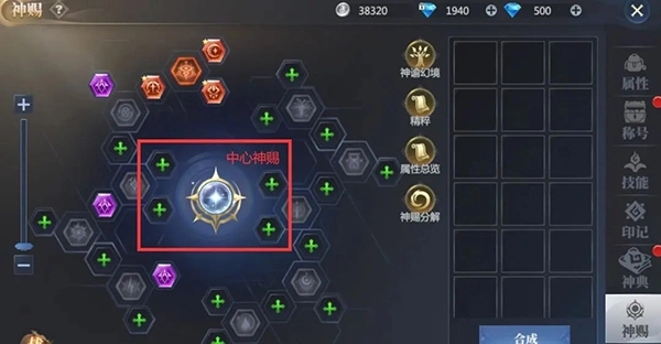 2、神赐装备:包含外圈神赐与中心神赐两类,每一种神赐都只能装配到对应的神赐孔位之中。