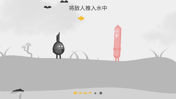 向右滑动屏幕,将敌人推入水中即可获胜。