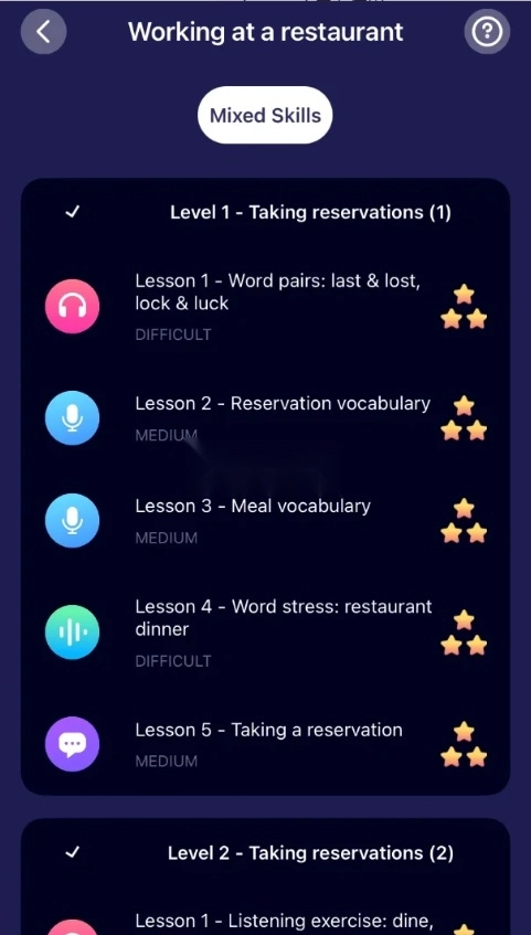 课程内容按由浅入深的逻辑划分成不同模块,同时配备了丰富多元的练习形式,涵盖听力理解、单词读音规范、词汇重音把握、语句表达训练以及词语连读技巧等多个维度,并且针对不同学习阶段的需求,设置了从基础到进阶再到高阶的分层练习难度。