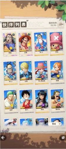 后排这边推荐多搭配些辅助角色,这样能玩出更多花样的阵容和招式组合。其中乔巴是必带的四星奶妈,而且它还能随时切换到前排,实用性拉满;罗宾则是能加分的四星角色,专长是打追加攻击,加上无属性的特性还能形成克制效果,如果没有罗宾的话,用乌索普代替也可以。