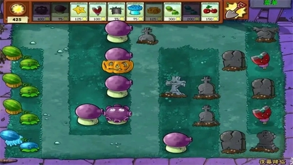 推荐战术:喷射蘑菇流(氤氲密布),战术要点:无需种植向日葵,应选择阳光蘑菇,它在夜间环境下的阳光产出效率比向日葵高得多;零阳光消耗的小蘑菇冷却时间一结束就要马上放置,后续再慢慢用75阳光的喷射蘑菇来替换它们;植物格子如果有空位,务必带上墓碑苔藓,用来清理场上的墓碑。