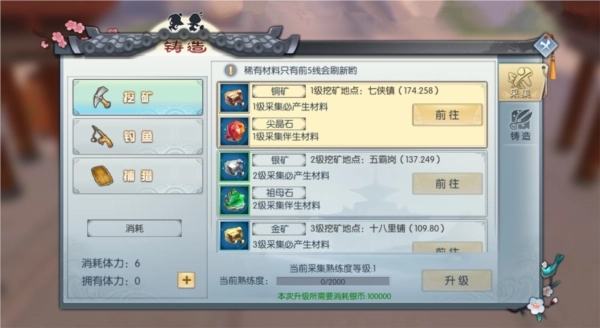 成功挖矿后能够增加熟练度,随着熟练度的提高,就可以挖掘更高级别的材料了。