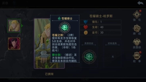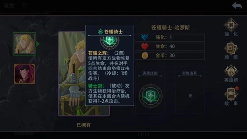 苍耀骑士是所有玩家解锁的首个英雄,同时也是游戏的新手引导英雄。