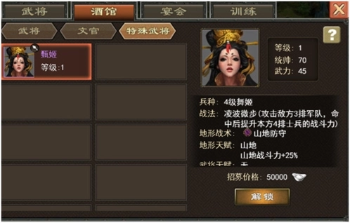 ●酒馆开放后,可消耗银币招募武将;文官的招募功能开放条件相对靠后,待满足条件后也可通过消耗银币招募文官。