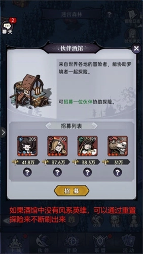 3、要是酒馆里找不到合适的风系伙伴,能通过重置探险来刷新酒馆里的伙伴。