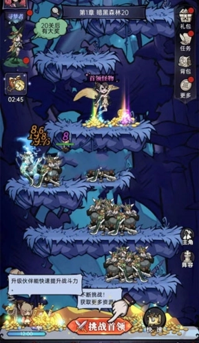 【超强阵容】:暗黑骑士担任前排肉盾,魔镜王后与邪魔悟空作为核心输出,再搭配上强力辅助疯外婆和女仆苏菲,这套组合堪称天下无敌。