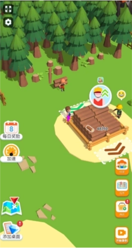 6、树木无法自行生长,和之前一样的操作方式,点击原木区域就能打开工人雇佣界面,在这个界面里雇佣植树工就能用来种植森林,如此一来你就能获得源源不断的原木了!