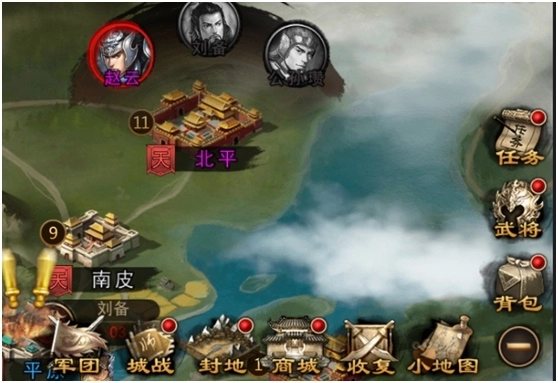 游戏地图里分布着60座主要城池,主线任务就是把这些城池一一收复。每座城池通常配备1到5名守城将领,每位将领都对应着一道关卡;只有击败该城的所有将领、闯过所有关卡,城池才会解锁并宣告收复成功。至于那些还没被收复的城池,它们的上方会始终笼罩着一层云雾。