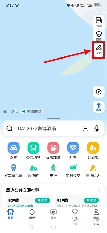 1、首先进入高地地图主机面,点击右边的【反馈】