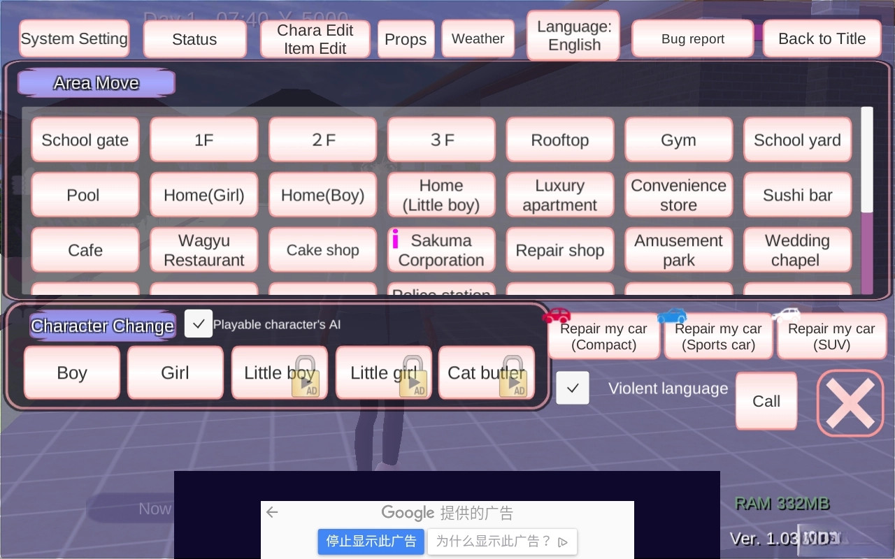 sakuraschoolsimulator敞篷车,人物出生点旁的小车变成了敞篷车