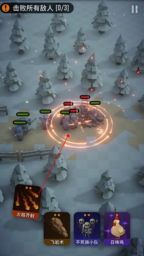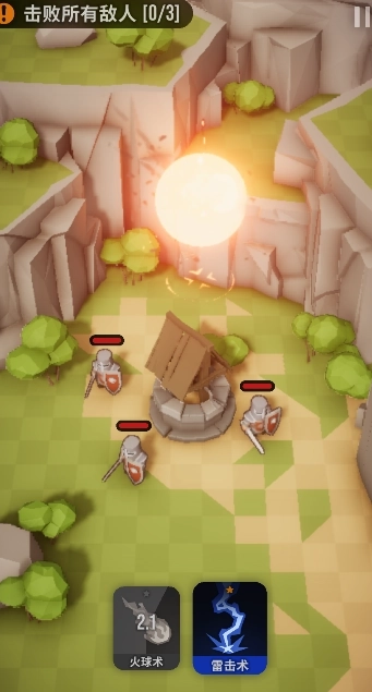拖拽火球,雷击等释放魔法击败所有敌人就能过关