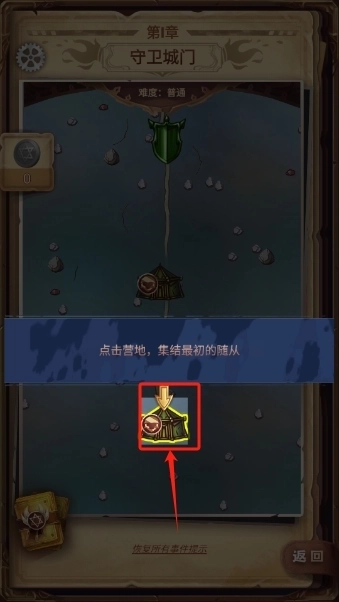 2、开启第一章的故事,我们点击营地集结最初的随从。
