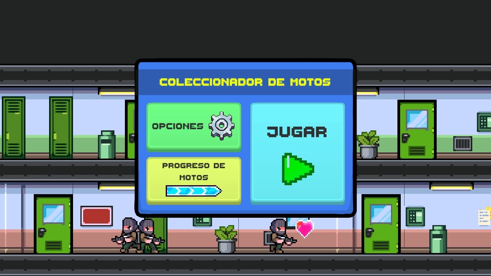 这是一款像素风格的射击游戏,主角是一位摩托车收藏家。在游戏里,你需要驾驶摩托车从建筑物上飞驰而下,途中要消灭所有拦路的敌人。你会遇到形形色色的对手,比如法师类敌人、厉害的术士以及装备齐全的士兵。你的核心目标是抵达停车场,那里停放着一辆待你领取的摩托车。不过,一旦进入停车场区域,你就得全程谨慎操控,躲开众多试图阻碍你的障碍物。只有顺利通过这些考验,你才能把这辆摩托车收入自己的收藏之中。你准备好开启这场动感十足、速度飙升的刺激冒险了吗?