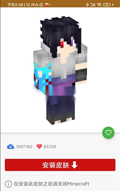 点击“应用皮肤”按钮,然后选择把它保存到“Minecraft PE”游戏中